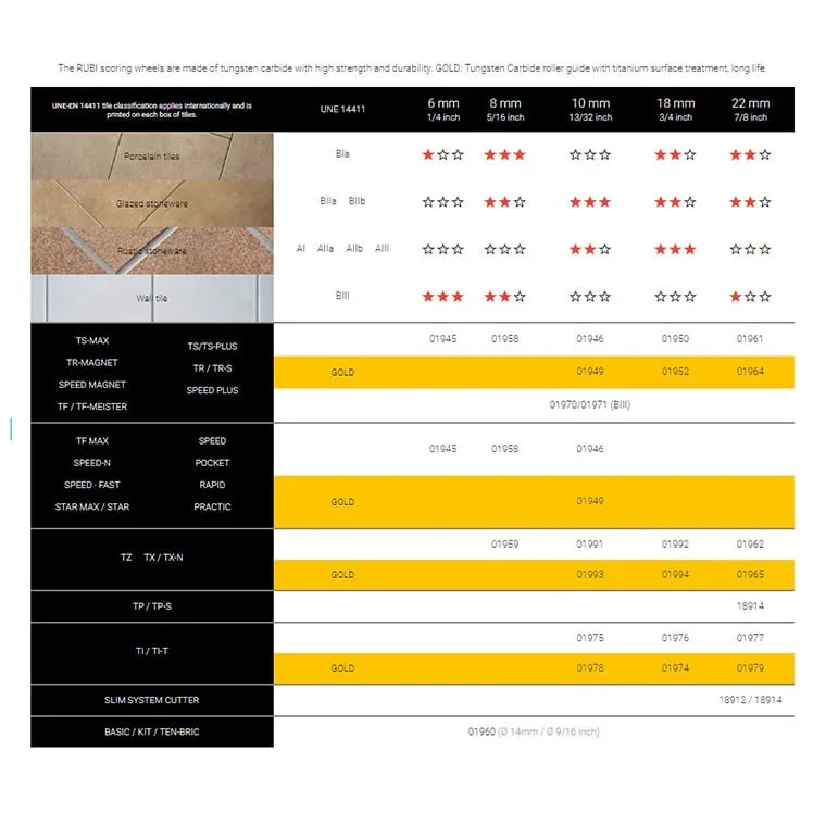 Rubi have also come up with this handy chart to help you select the right scoring wheel for your application.